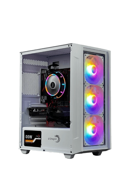 **Design and Build:** Mid-tower with dual tempered glass (side/front) and SPCC steel. White finish for clean look. **Fans:** Supports 3x ARGB fans (not pre-installed); up to 7x 120mm total. **Compatibility:** ATX/M-ATX/ITX; GPU up to 320mm; CPU cooler up to 160mm. 7 expansion slots. **Cooling Options:** Front/top 240mm radiator; mesh front for ventilation. **I/O and Dimensions:** USB 3.0 x1, USB 2.0 x2, HD Audio. Dimensions: Approx. 400x200x450mm. Storage: 2x 3.5 HDD, 2x 2.5″ SSD. **Additional Features:** Dust filters; cable management. High-airflow design for gaming.”